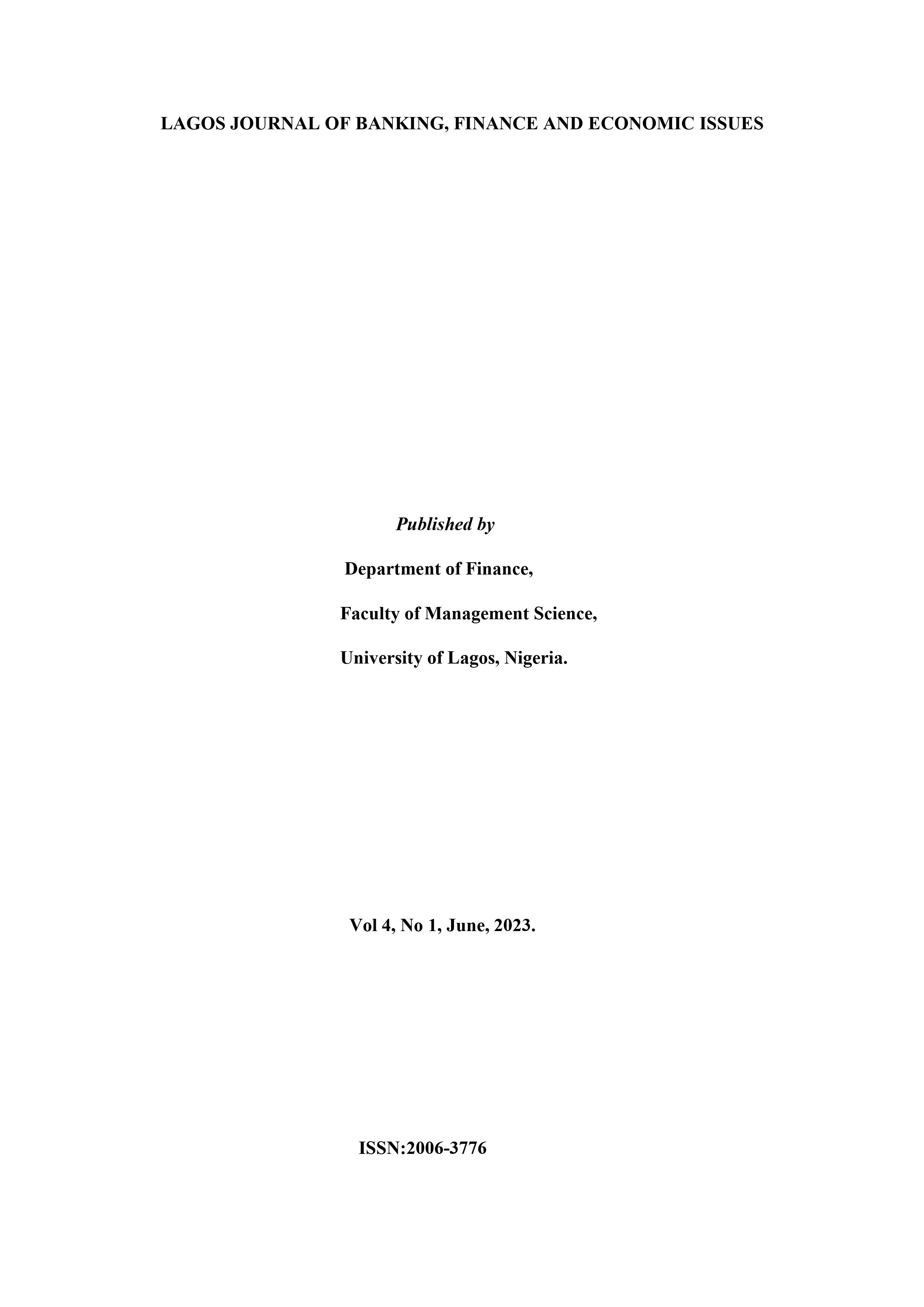LAGOS JOURNAL OF BANKING, FINANCE AND ECONOMIC ISSUES